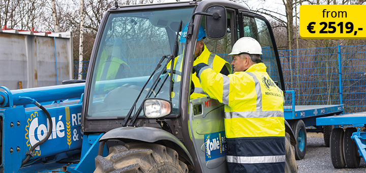 The TCVT telescopic handler training is intended for employees who carry out hoisting work on a construction site in the Netherlands with an operating load moment of 10 t/m or more.